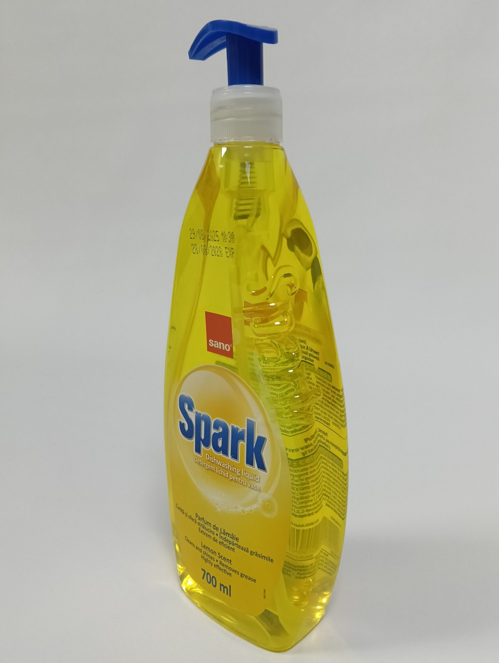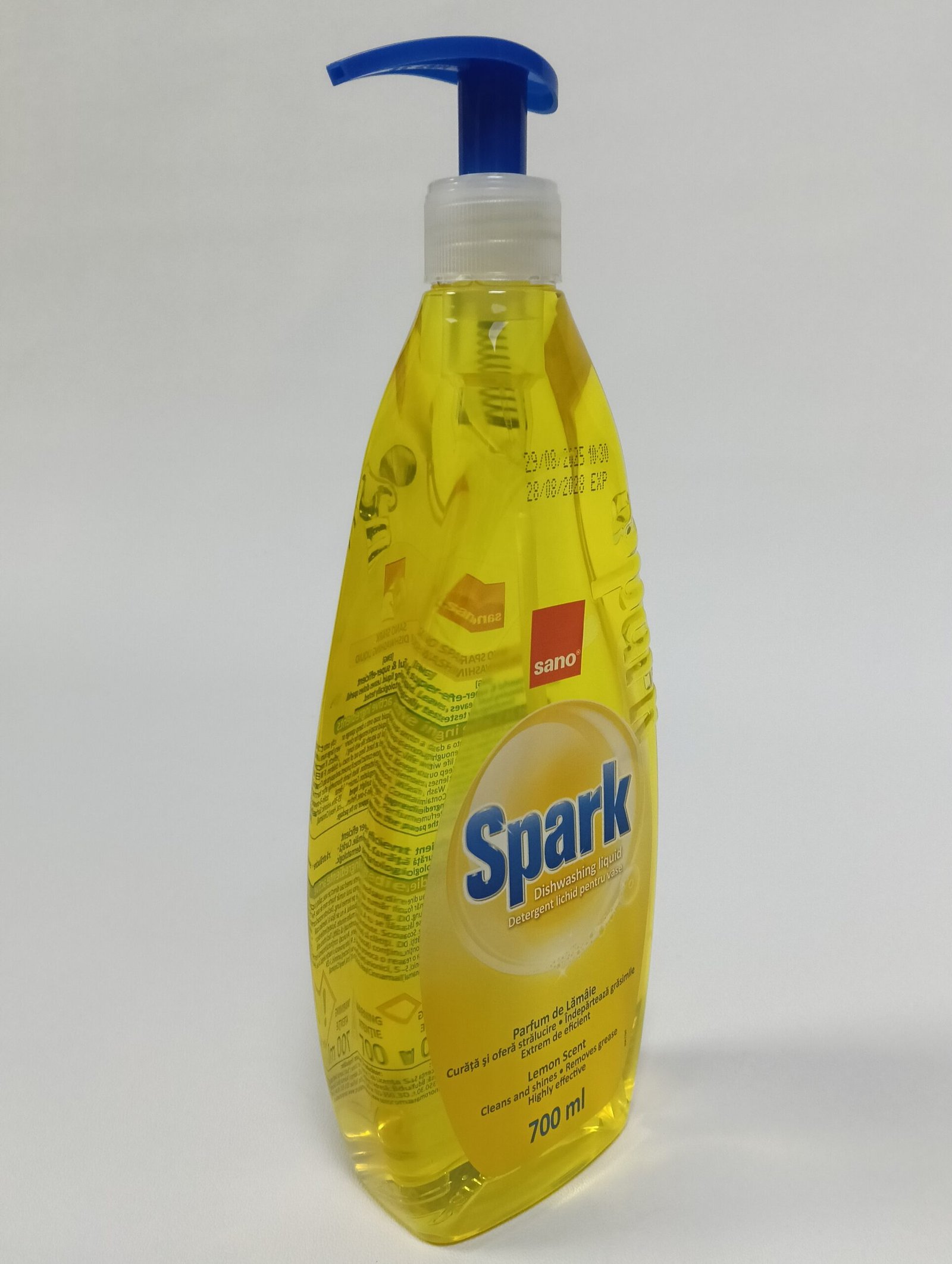 Detergentul de vase Sano Spark Lămâie 700 ml este conceput pentru utilizare zilnică. Curăță eficient farfurii, pahare, tacâmuri, tigăi și oale, fără a lăsa urme sau reziduuri. Formula sa lichidă se distribuie ușor pe burete și produce o spumă bogată, care acționează rapid asupra grăsimii.