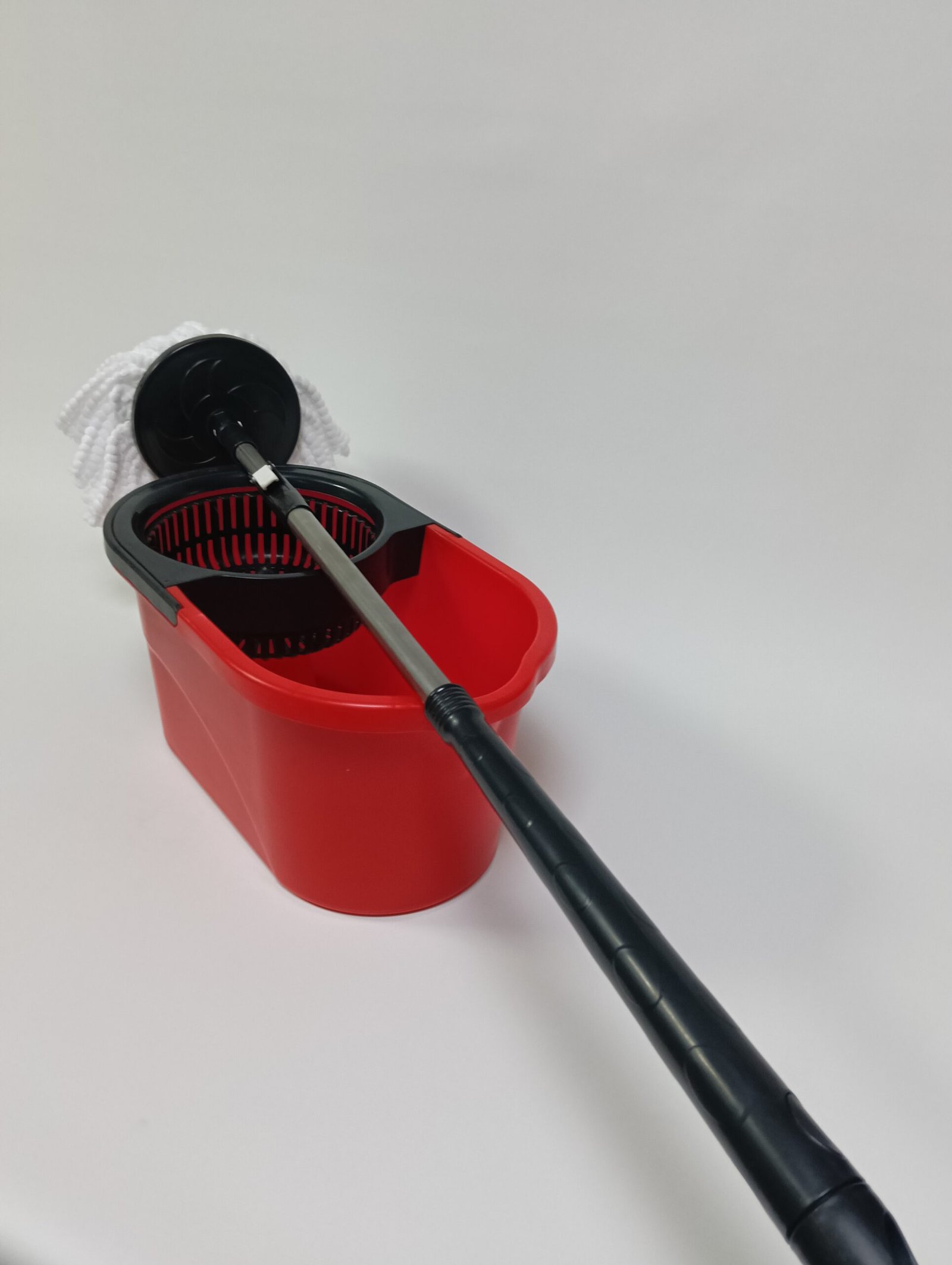 Capul mopului se rotește complet, eliminând murdăria rapid. Găleata ajută la stoarcerea uniformă și controlată a mopului. Microfibra fină și durabilă absoarbe lichidele eficient, lăsând podelele curate și fără urme. Curățenia devine mai ușoară și mai rapidă, ideală pentru uz casnic sau birouri.